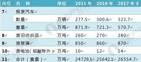 圖表3:2015-2017年我國主要再生資源類別回收價(jià)值表(單位:億元)